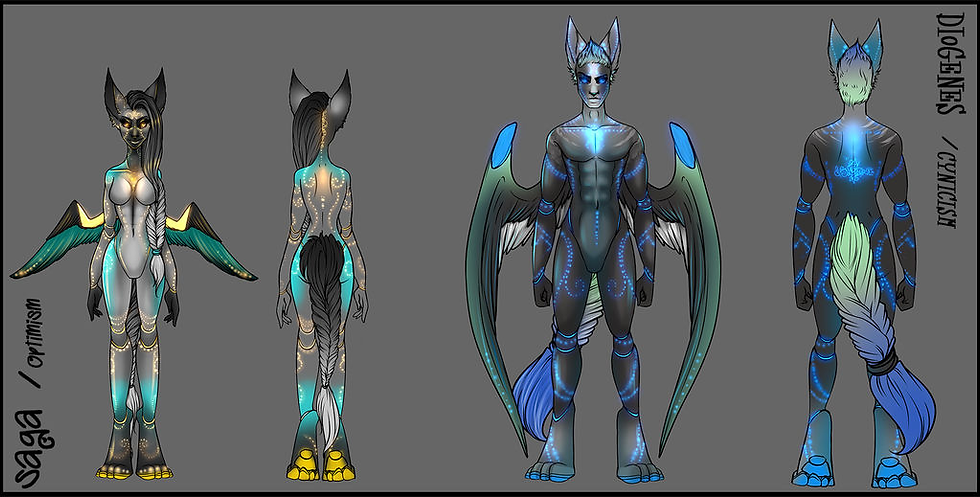 This is an incredibly developed species, but the original reference sheets no longer display the characters properly. Until I come up with a fix for this which is accessible to the whole species, there will simply be one piece from amongst the art that exists of each here.